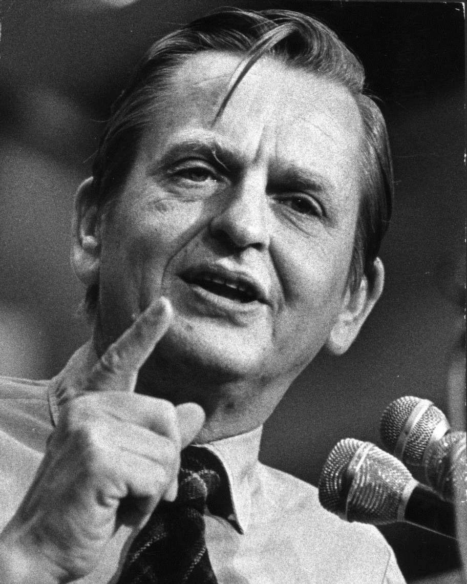 Den 28 februari 1986, runt klockan elva på kvällen, lämnade statsminister Olof Palme biografen Grand i centrala Stockholm tillsammans med sin fru Lisbet och sonen Mårten med flickvän. Efter ett kort samtal utanför biografen började Olof och Lisbet Palme promenera söderut längs Sveavägen, mot deras bostad i Gamla stan. Efter att par hundra meter korsade de gatan till den östra trottoaren då Lisbet ville titta i ett skyltfönster. De fortsatte sedan söderut längs Sveavägen.